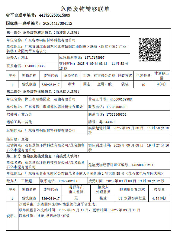 2025年危废联单
